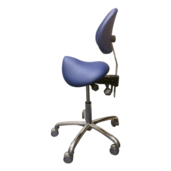 De zadelvormige zitting volgt de natuurlijke rondingen van het lichaam en is te verstellen met behulp van de hendel onder de zitting.